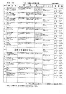 7月 3歳以上児献立表
