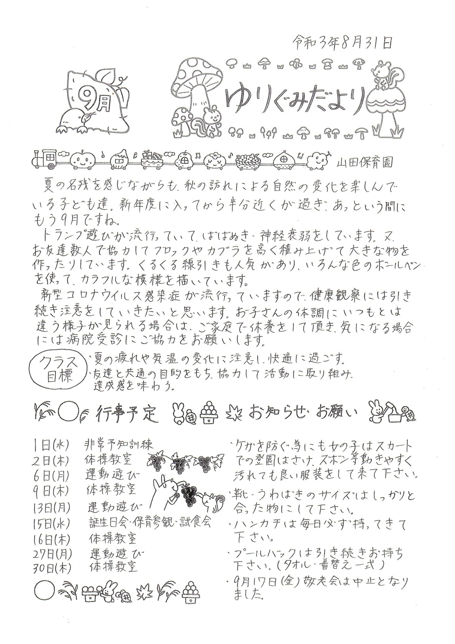 9月 ゆりぐみだより