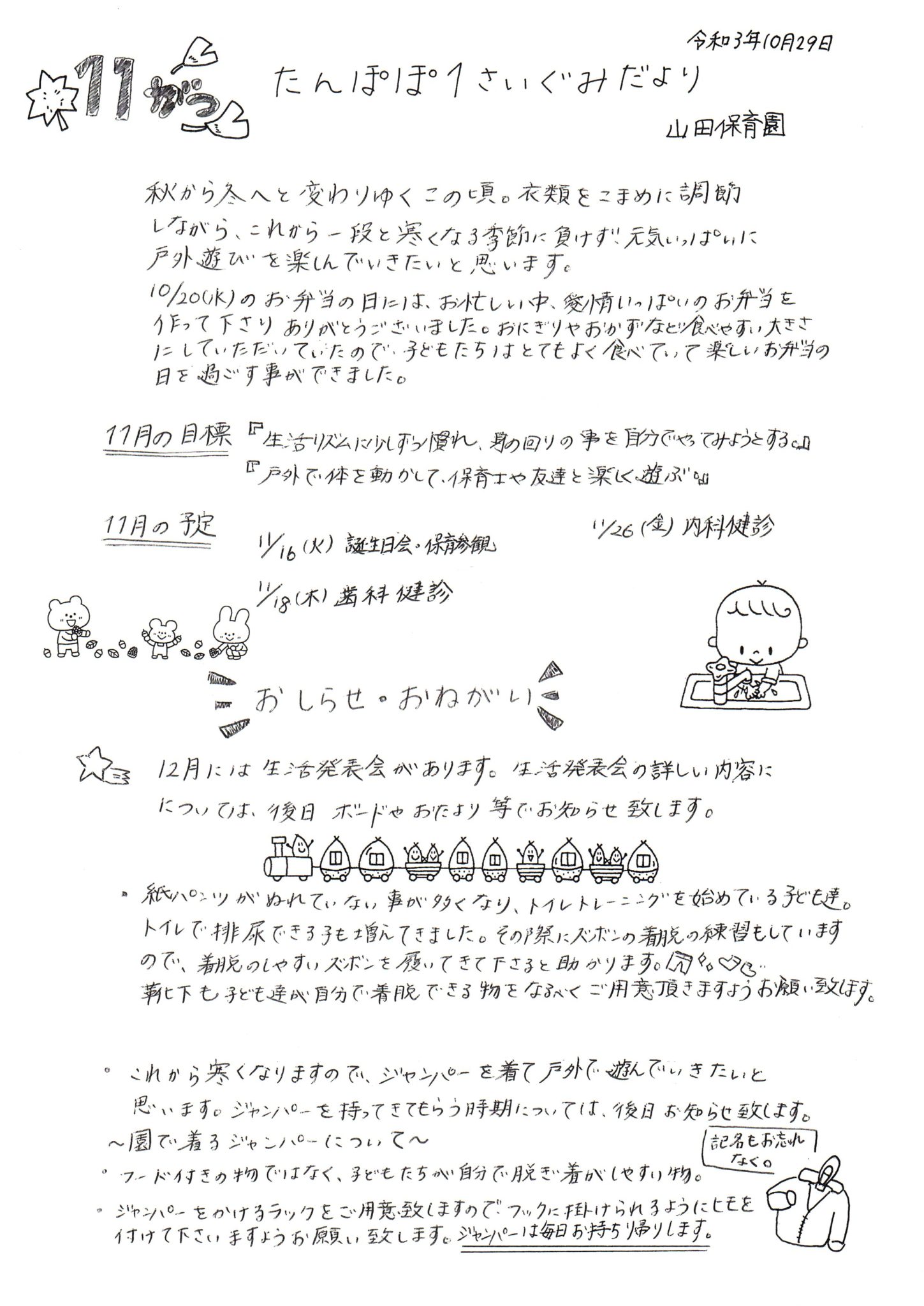 11月 たんぽぽ1歳ぐみだより