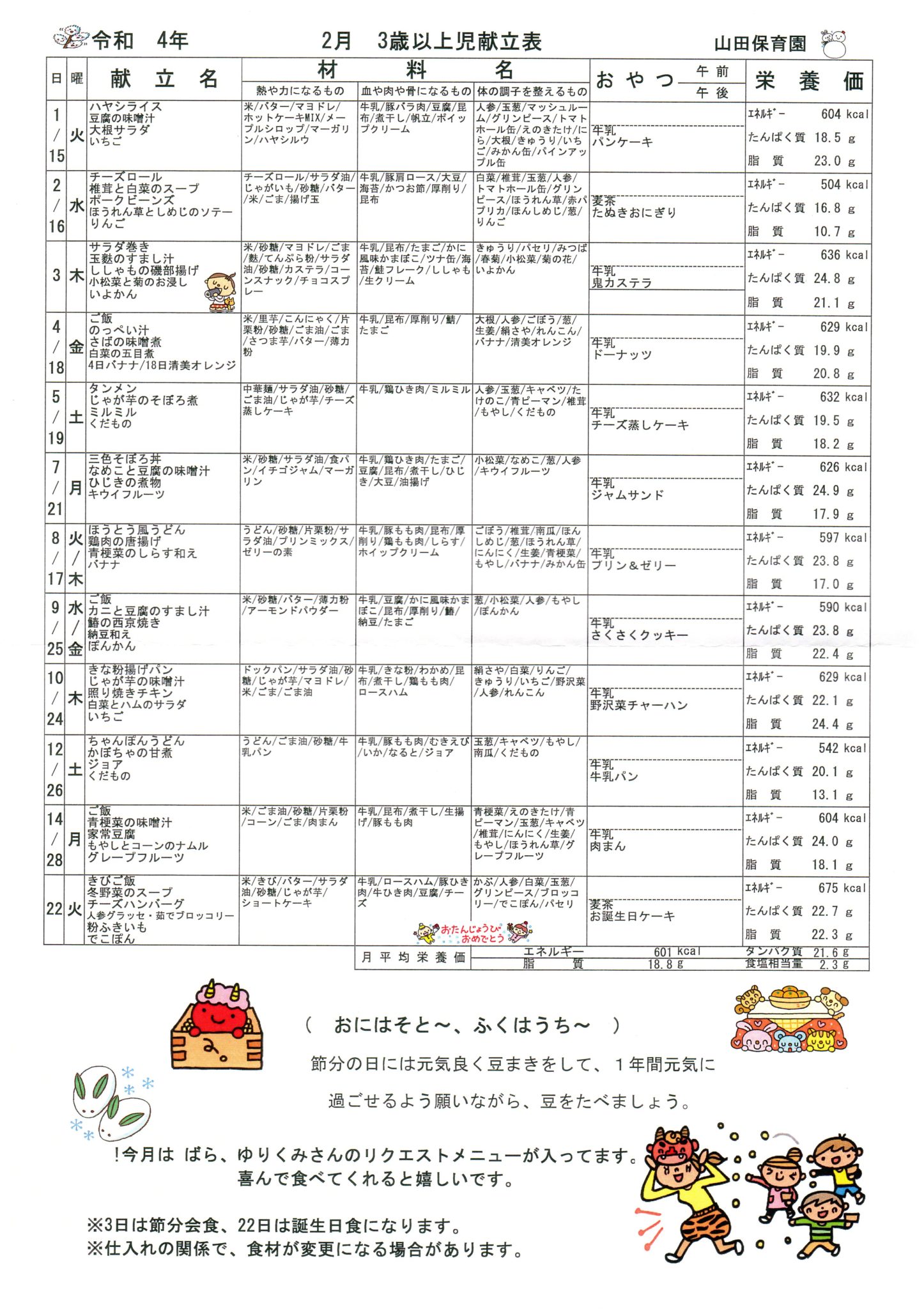 2月 3歳以上児献立表