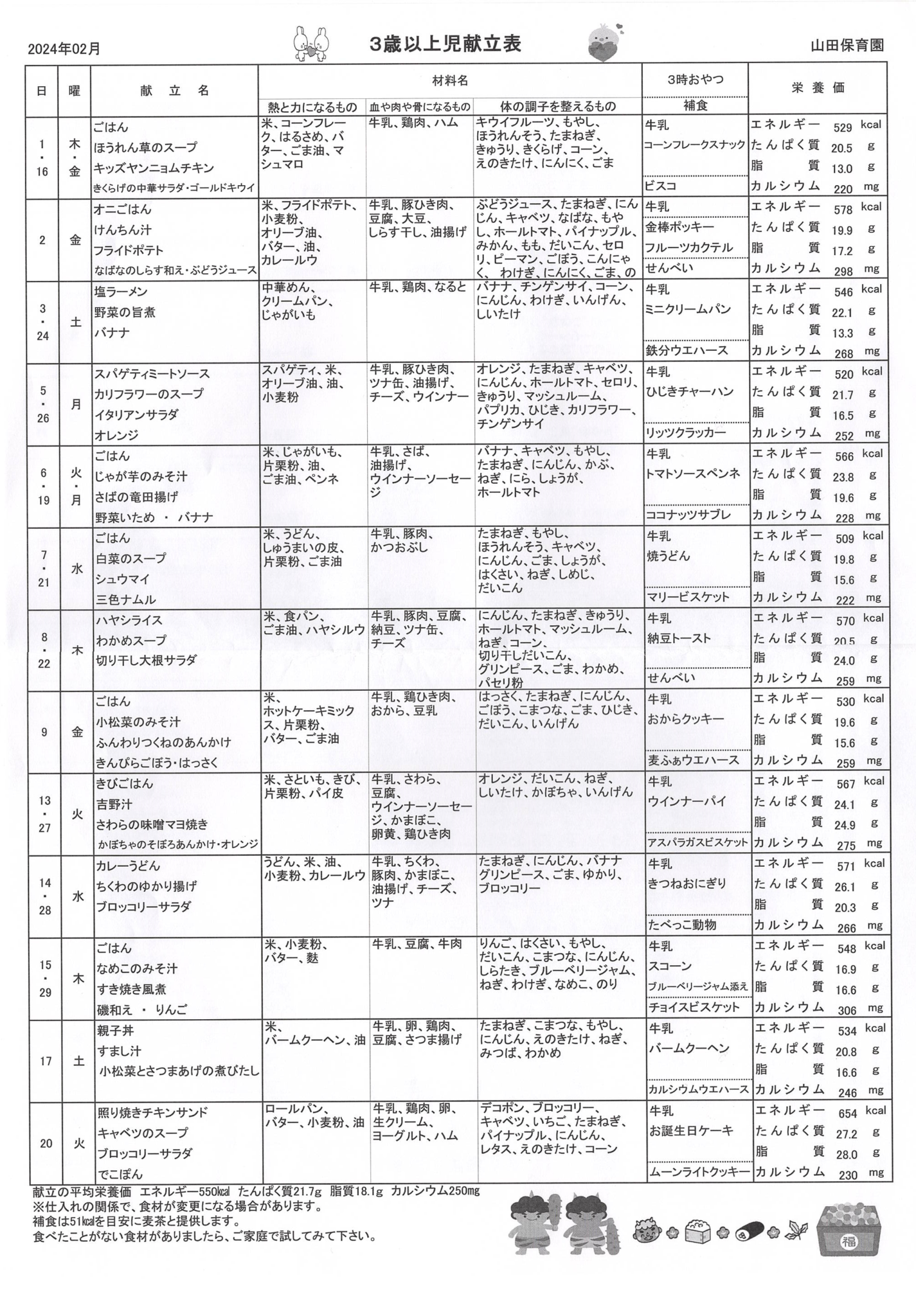 2月 3歳以上献立表