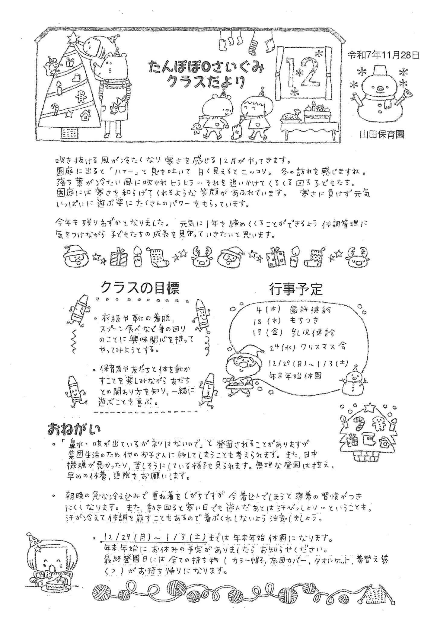 12月 たんぽぽ0歳ぐみだより