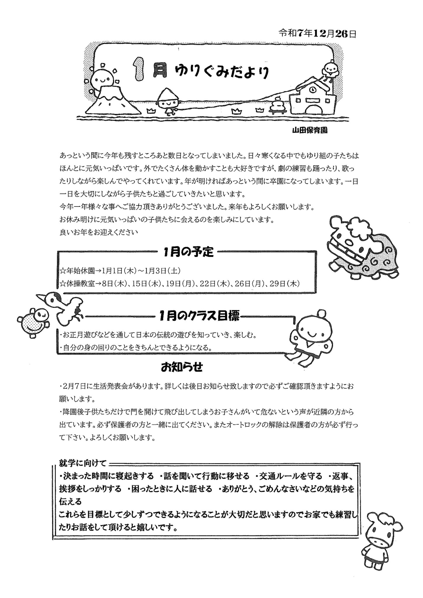 1月 ゆりぐみだより