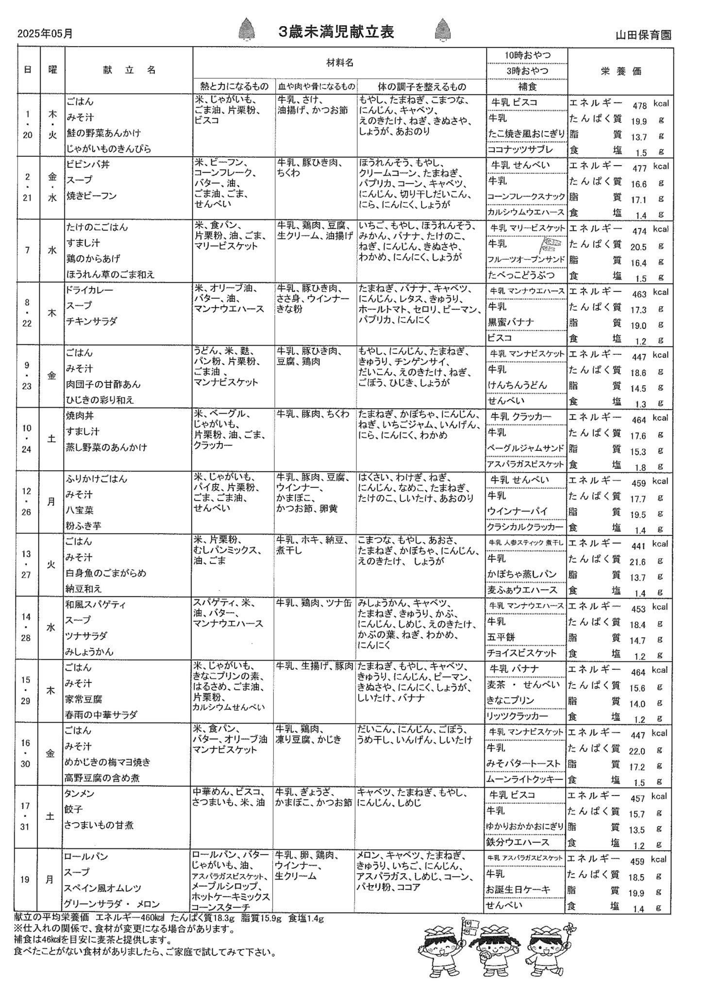 5月 3歳未満児献立表
