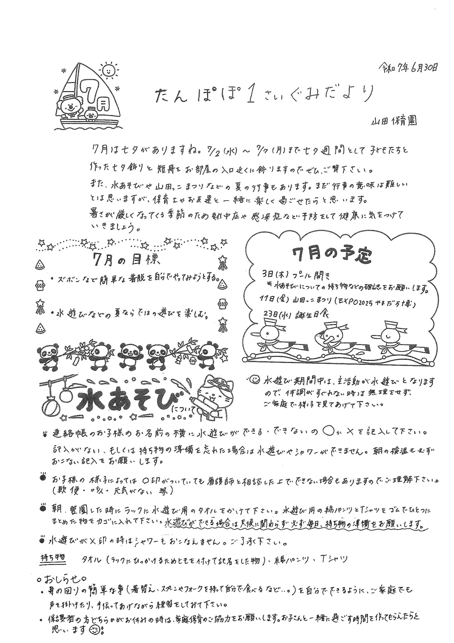 7月 たんぽぽ1歳ぐみだより