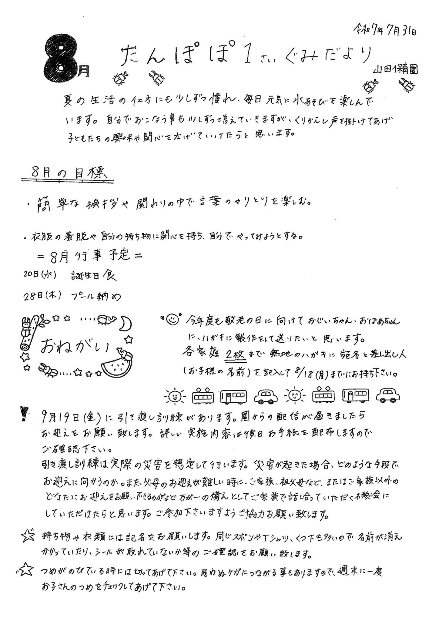 8月 たんぽぽ1歳ぐみだより